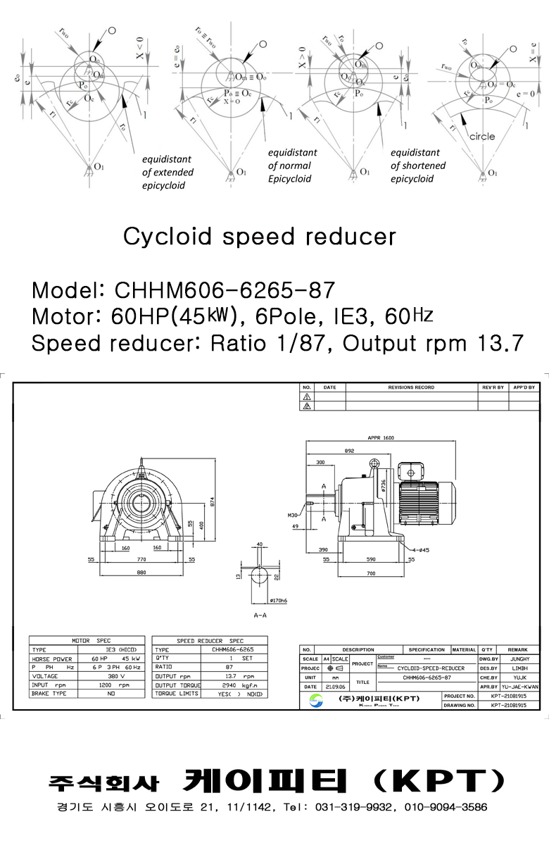 주식회사 케이피티 KPT는 싸이크로 감속기 제작, 수리 전문 회사 입니다. 싸이클로이드 감속기는 감속모터, 컨베이어 감속기, 분쇄기 감속기, 사료 배합용 감속기, 교반기 감속기, 윈치 감속기, 파쇄기 감속기, 인출기 감속기, 압출기 감속기 등에 널리 사용한다. 풍조기계 감속기 제작, 용승파워 감속기 제작, 동신감속기 제작, 동양감속기 제작, 대성감속기 제작, 협동감속기 제작, 합동감속기 제작 가능합니다.