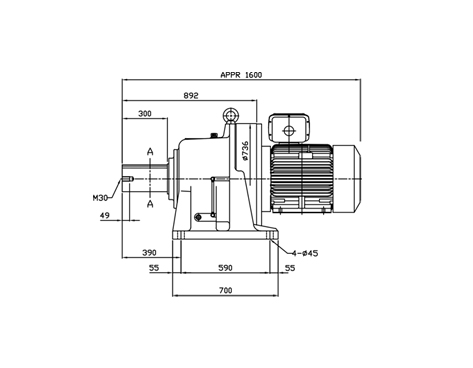수평형, 60HP(45kW), 6Pole, IE3, 60Hz, 감속비율 1/87, 출력회전수 13.7rpm.