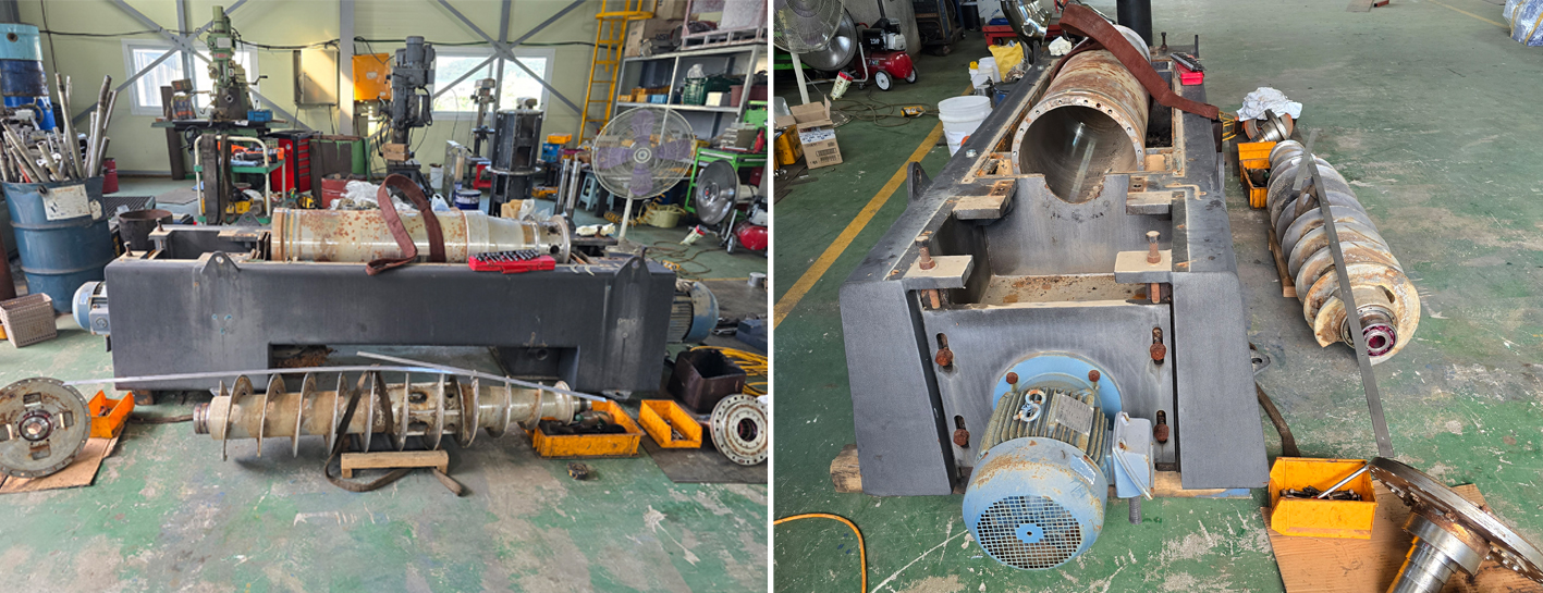 축산 슬러지 탈수용 디켄터 수리.