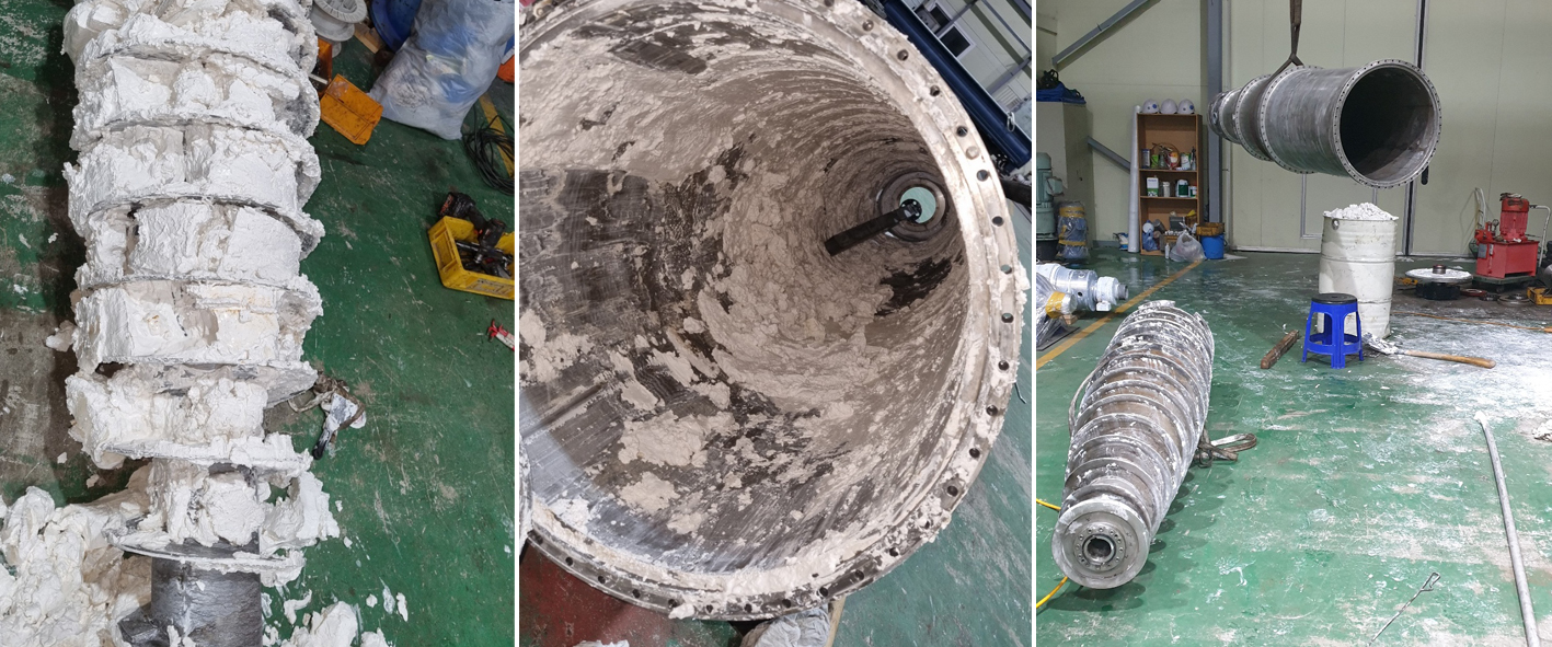 경질탄산칼슘 PCC 농축용 스크류 데칸타 수리.